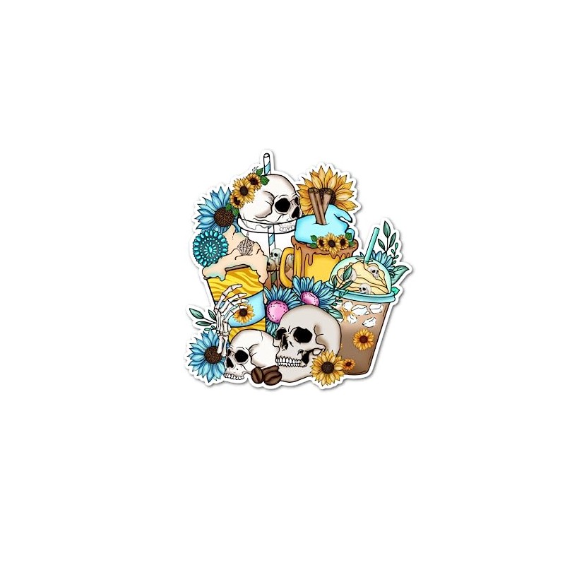 Skull Flowers and Coffee Skeleton Boho Sticker