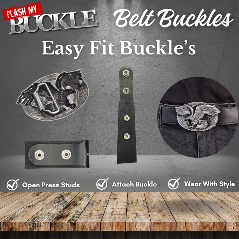 • EASY FITMENT - Swap buckles effortlessly on a press stud belt! Just open the belt, slide in the buckle, and snap the studs closed. Enjoy multiple styles with one belt, saving money and staying chic.