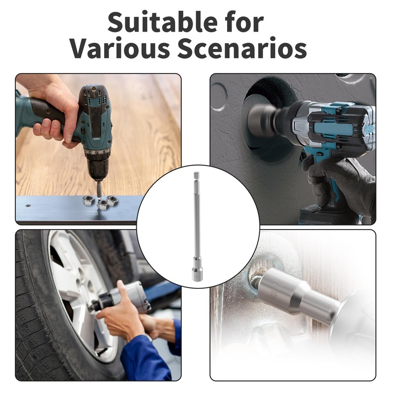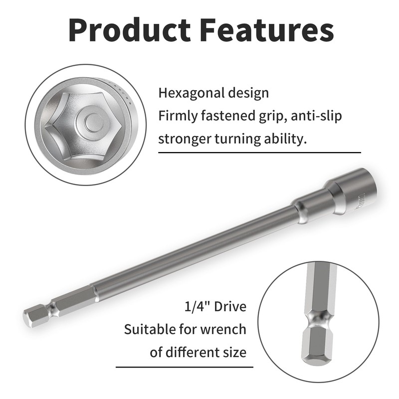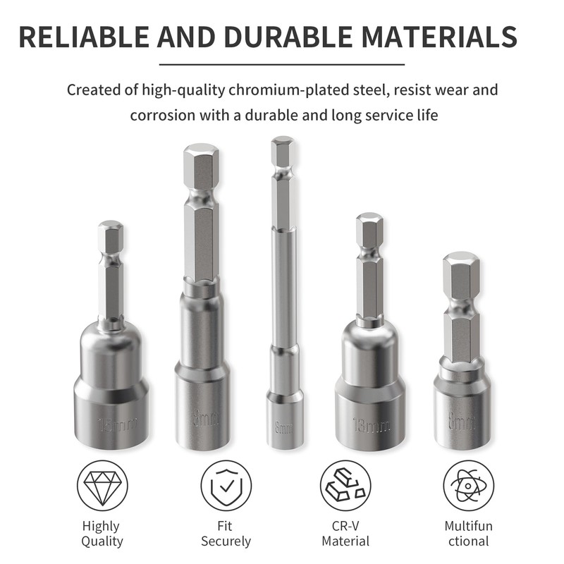 • 【Material】Made of high-quality chrome vanadium (CR-V) steel, the hex shank nut driver bits feature a sandblasted surface that enhances hardness and corrosion resistance, ensuring durability and a long service life