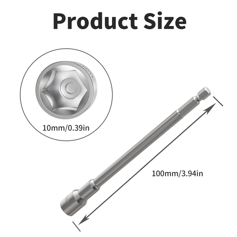 Skweawert 1/4" Hexagonal Shank Socket 10mm No-magnetic Power Nut Driver Metric 100mm Length Driver Drill Bit Set
