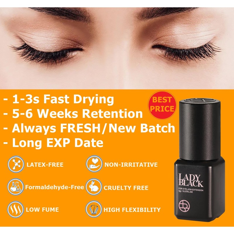 - It's performance will not drop off quickly outside of the recommended humidity level and hence top lash professionals often consider Lady Black a "must have" in their lash supplies.