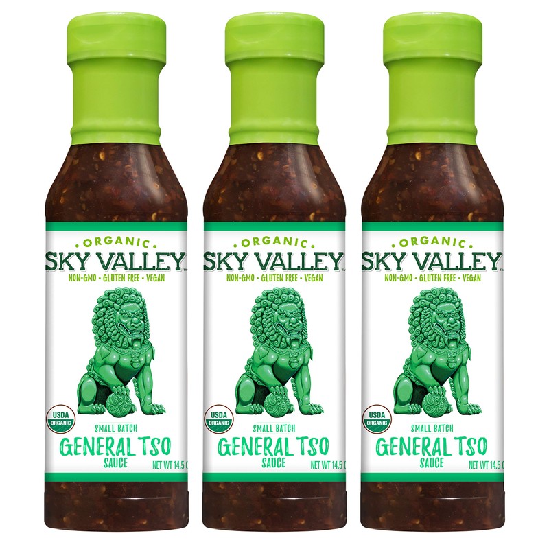 Sky Valley only uses superior quality ingredients to ensure our sauces are delicious tasting and full of flavor. Made with organic tamari sauce, ginger, and garlic for a sweet and zesty taste. Our Organic General TSO sauce is Gluten-Free, Vegan, and Non-GMO.
