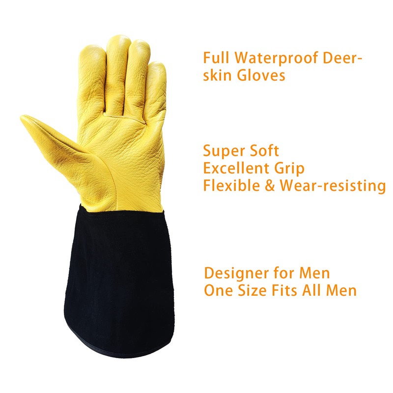 - The most advanced deerskin work gloves -- 360° waterproof & 360° thorn proof & 100% heavy duty deerskin leather