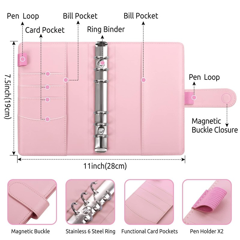- Easy to Carry:A6 Binder Budget Envelopes System fits in your handbag, backpack,suitcase or desk;A6 ring binder suitable for all standard A6 size inner pages.