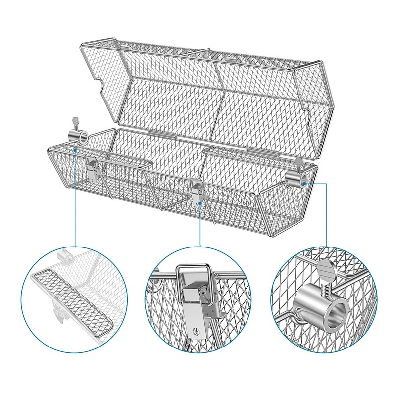 - [Firm Lock Design For Easy Access] --- Two buckled locks design ensures firmly lock of the basket during roasting to prevent food from falling and when the food is roasted, simply uncover the buckles to easily unlock and take out the food.