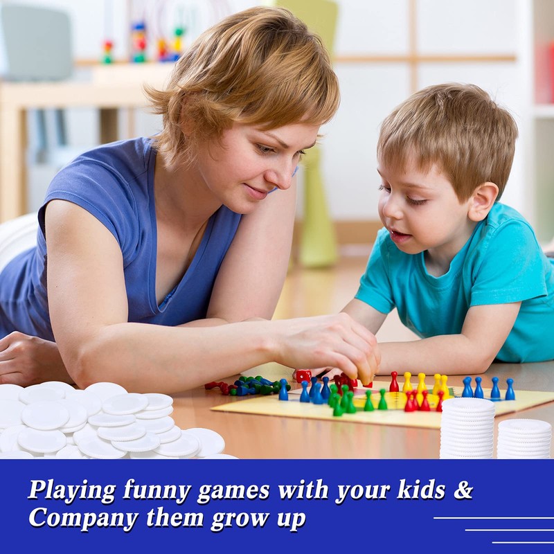 - What you will receive: you will receive 200 pieces plastic white poker chips, sufficient quantity for you to play bingo games, math games and other kinds of games with your children, which can help to develop your children's intelligence and strengthen parent-child relationships at the same time