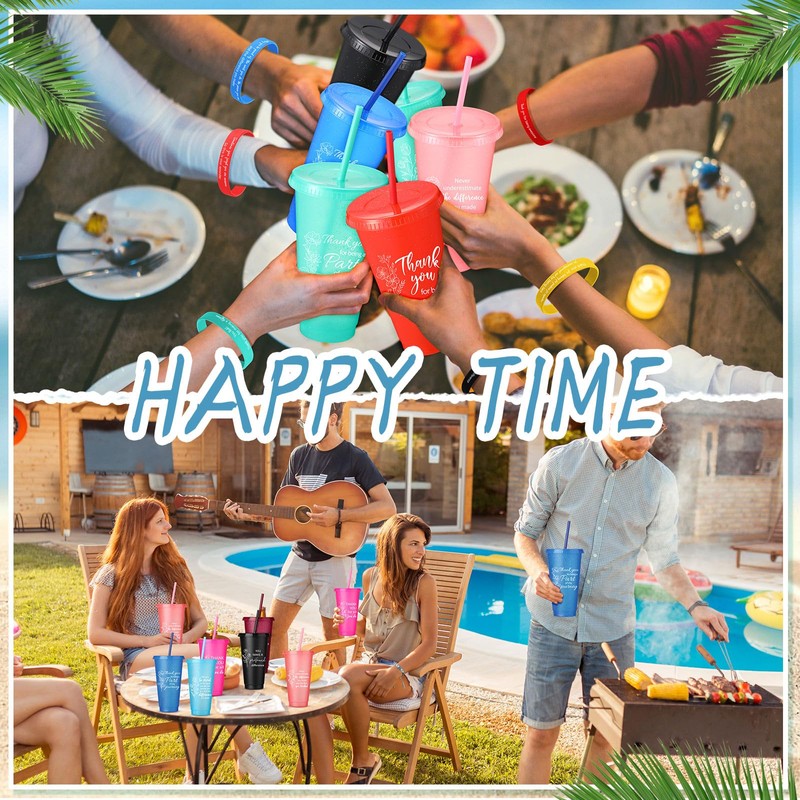 - Inspirational Gift for Employee: thanks to their size and varied designs, these team appreciation tumbler cup and Thank You wristbands can seamlessly fit into various usage scenarios; The printed of inspirational words made them become an ideal appreciation gifts for your staff, colleagues, coworker, when birthdays, Thanksgiving Days, Christmas, new years, graduation, and other meaningful days; You can also use these plastic reusable gift tumblers for the party