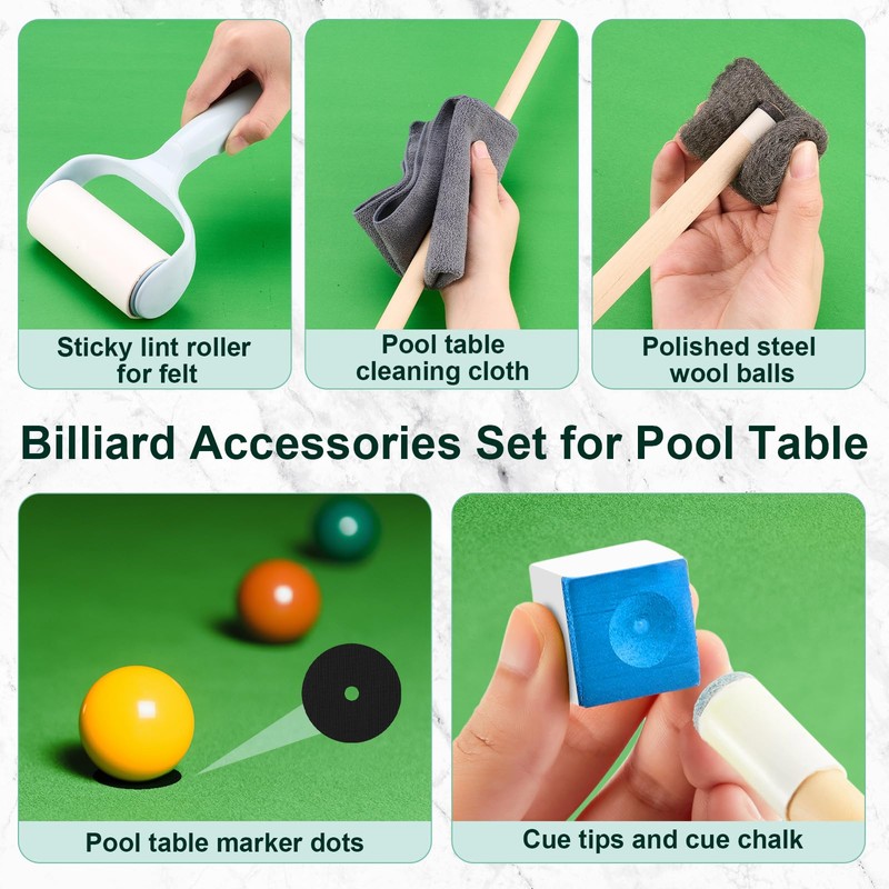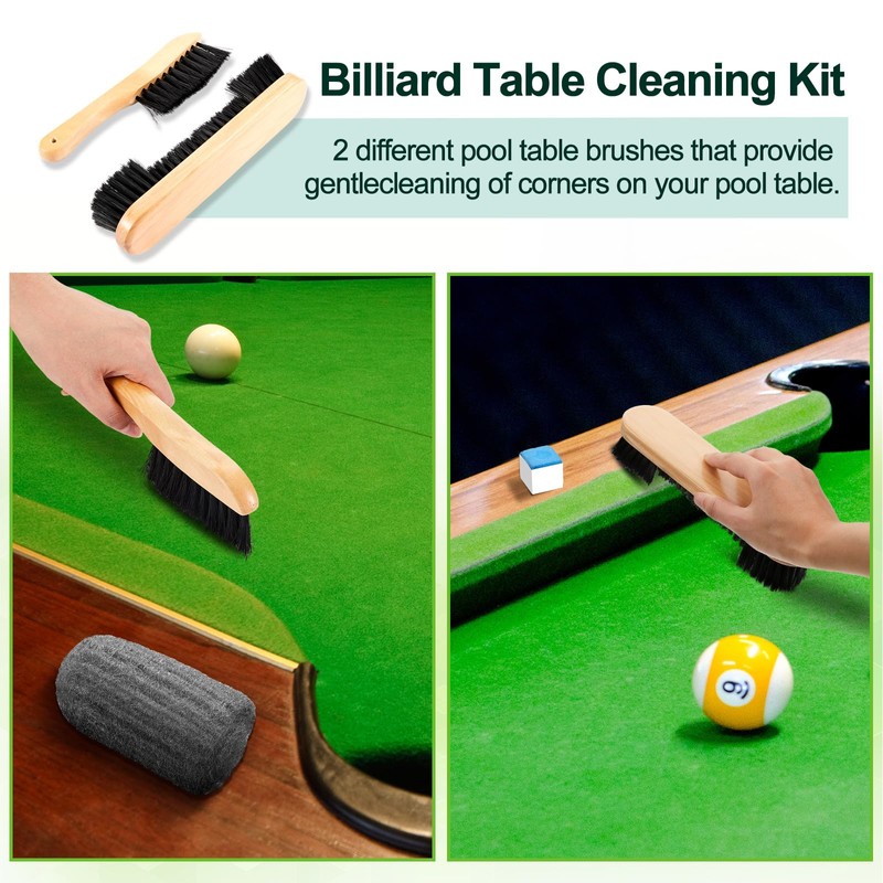 • Make Pool Table Clean-up Easy: use our pool table brush, cleaning cloth, and polishing cotton to provide the necessary care for your pool table and cue; The brush is made of soft nylon bristles, making it easy to clean every corner of the pool table; The sticky lint roller makes cleaning your pool table even easier. Just roll it over the surface to pick up hair and dust. The easy-tear design allows you to quickly remove dirty sheets after use