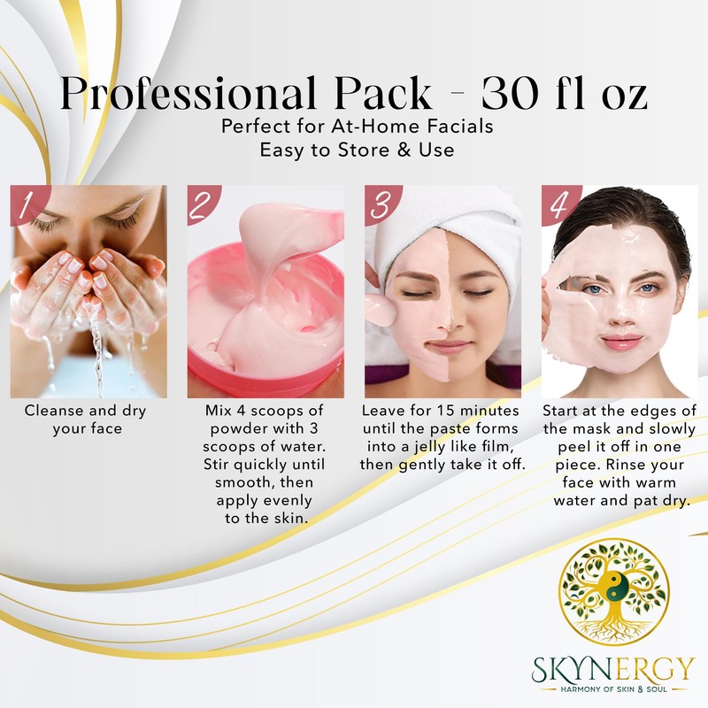 Elevate your skincare ritual with the luxurious Red Gold Lactic Acid Jelly Mask by SKYNERGY. This professional-grade peel-off facial mask, packed in a generous 30 Fl Oz, is designed to cater to all skin types, be it dry, oily, or sensitive. Crafted with utmost care, our jelly mask is infused with a rich blend of natural herbal extracts that harmoniously cater to diverse facial structures. Experience the transformative power of nature as these extracts work synergistically to rejuvenate and nourish your skin, leaving you with a radiant and revitalized complexion. Simplify your self-care routine with our user-friendly jelly mask. Effortlessly blend the powder with water or your favorite essence toner until it forms a luxurious jelly-like consistency, ensuring easy application and a spa-worthy facial experience in the comfort of your own space. Unlock the potential of hyaluronic acid, renowned for its skin-revitalizing properties. This active ingredient deeply penetrates, boosting skin cell metabolism and enhancing blood circulation for a well-hydrated, radiant complexion. Transform your home into a spa-like sanctuary with our Professional Jelly Mask for Facials. Immerse yourself in top-notch facial treatments and indulge in the anti-aging benefits tailored for all skin types. Experience the radiant glow of red gold lactic acid and the power of natural herbal extracts. Click "ADD TO CART" and let the transformative journey begin