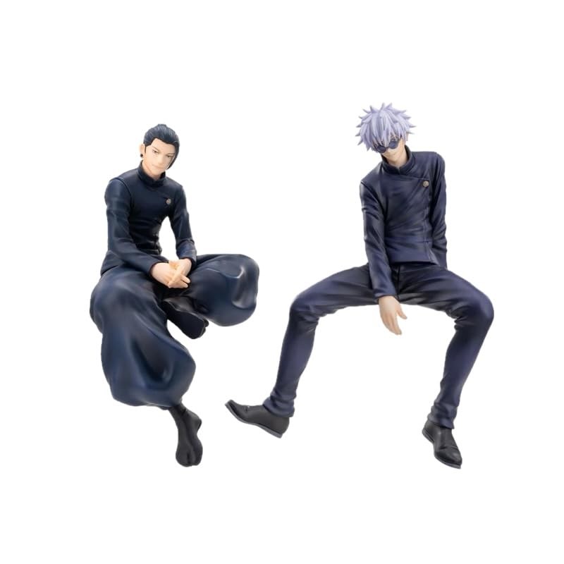 - Iconic Poses: Satoru Gojo/Suguru Geto sits with a relaxed posture, while Yuji Itadori sits confidently.