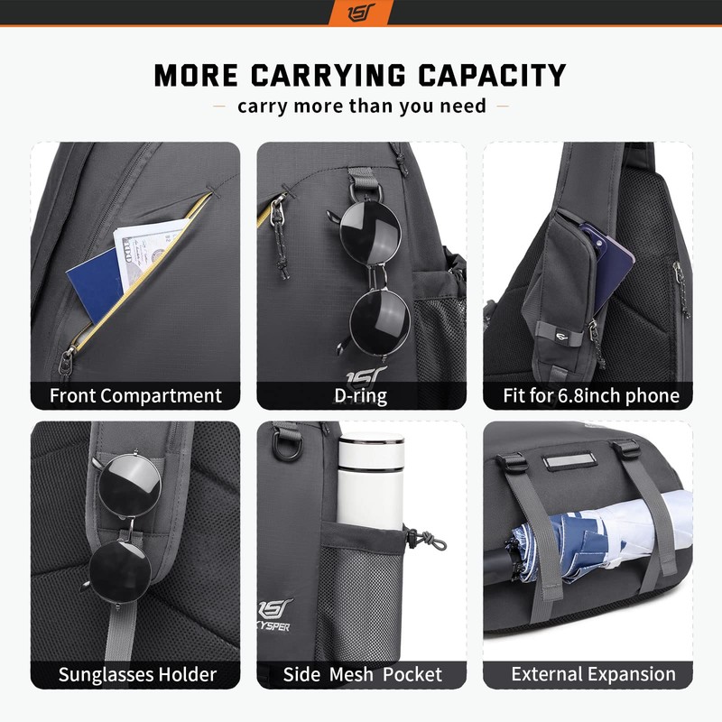 - Diseño multifuncional: la bolsa para hombre tiene un espacio más funcional. El compartimento central con cierre tiene un gancho para llave y un agujero para auriculares, que es conveniente para organizar las llaves y disfrutar de la música en cualquier momento y en cualquier lugar. El anillo en D y la correa de hombro de la bolsa cruzada pueden colgar anteojos. Y la parte inferior de la mochila cruzada está diseñada con dos correas ajustables para llevar paraguas, ropa, etc
