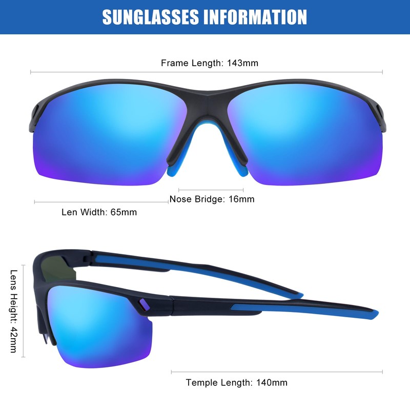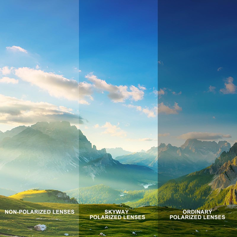 - TAC POLARIZED LENS - All SKYWAY sports sunglasses are polarized and mirrored , which stops 99.9% of glare, blocks 100% of harmful UV, and absorbs harmful blue light, all while enhancing color.