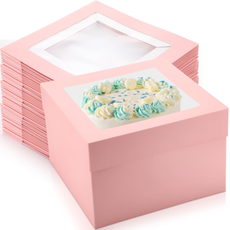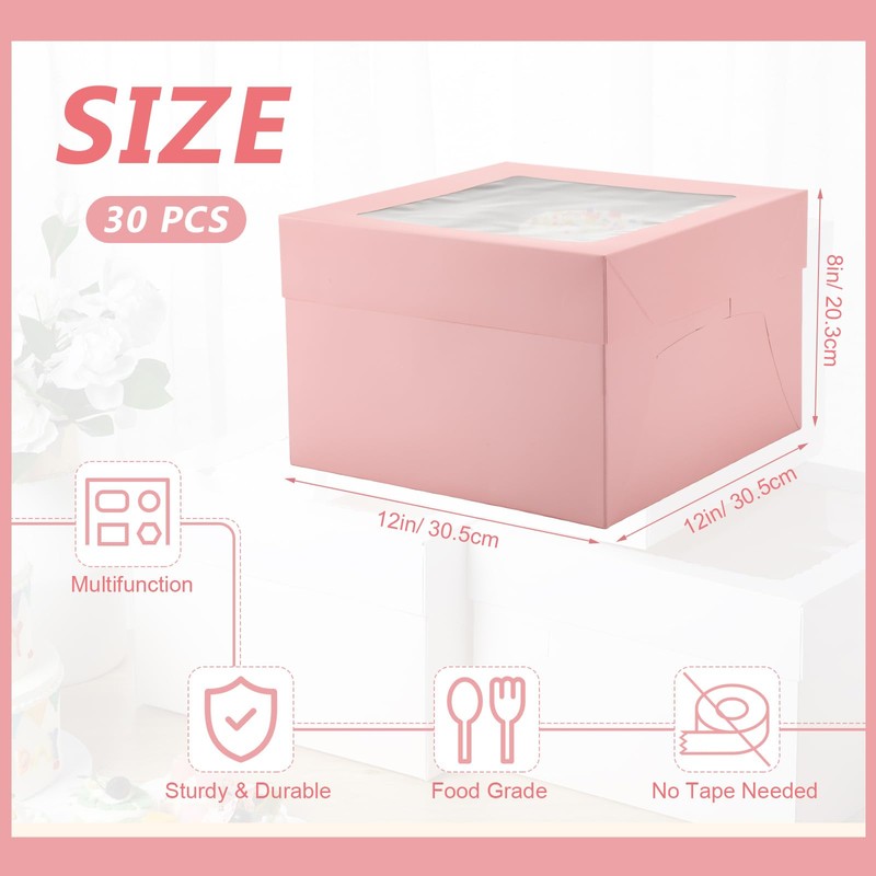 Skyygemm Skyygemm 30 Pcs 12 x 12 x 8 Inches Cake Boxes with Window Tall Bakery Boxes Tier Cakes Pastry Dessert Containers Disposable Cake Containers(Pink)