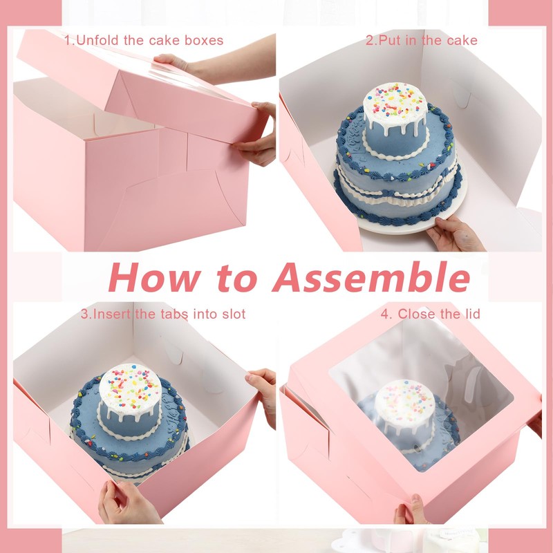 - Transparent Display Window for Visual Treat: featuring a clear display window, and allowing people to admire your beautifully decorated cake within the box, the pastry boxes create an enticing visual appeal and intrigue, making your cake an appealing treat