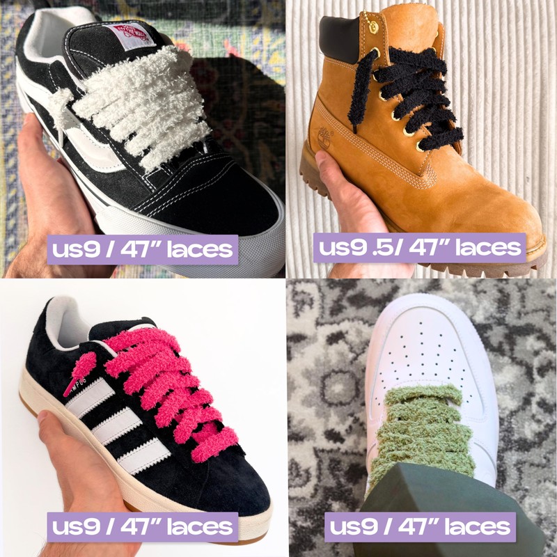 - DESIGN FOR TRENDY SNEAKERS: These purple plush laces give your such as the Adidas Campus and Samba, the Air Force 1, the Vans Knu, Old Skool... and other fashionable sneakers a new stylish look. This large campus shoelace is truly fashionable in the sneaker community. Follow the trend, but stand out with your new large purple laces