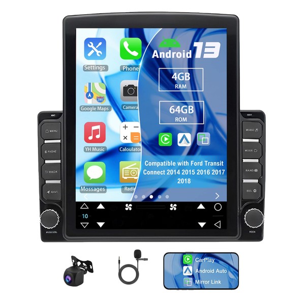 Slakerbe Android 13 Double Din Car Radio Compatible with Ford Transit Connect 2014 2015 2016 2017 2018, 4G+64G 9.7" Touch Screen Car Stereo with Carplay Android Auto GPS WiFi Mic Backup Camera