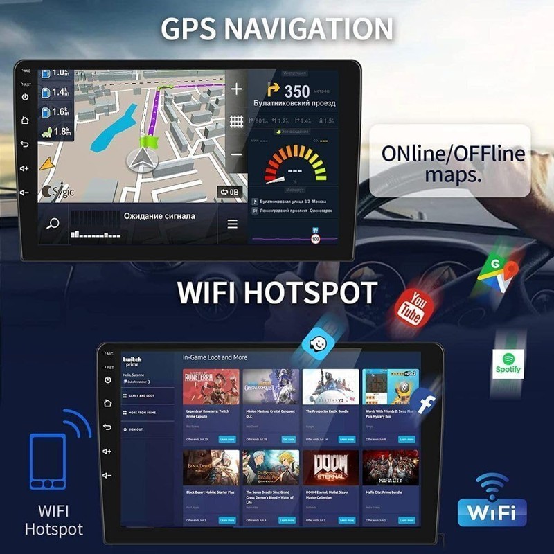 - 【Built-in GPS Navigation & WIFI】The GPS navigation of the car music player is more accurate and efficient. Offline maps can be downloaded and used, and real-time map updates can also be achieved through WiFi connections, It also supports WiFi for Play Store access, online videos, and navigation