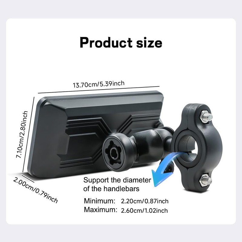 - 【Easy Installation】 This MP5 Player fits most motorcycles with handlebar diameters from 2.2cm/0.87in to 2.6cm/1.02in. The easy installation process means you can set it up in minutes, without complicated tools or steps. The installation is firm. Waterproof design that can adapt to outdoor weather and environment. Stable performance