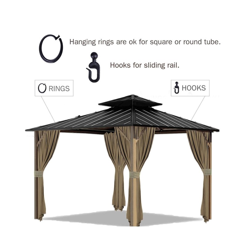 - EASY INSTALLATIONInserting the rings or hooks into the curtain loops and hang over existing frame of gazebo. We also provide with an instruction for you.