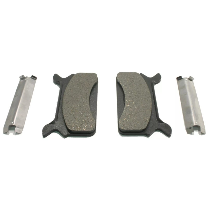 Non-Asbestos, semi-metallic kevlar/carbon fiber brake pads replaces Polaris 2201429 & 2201430. Also includes spring clips that replaces 2200467