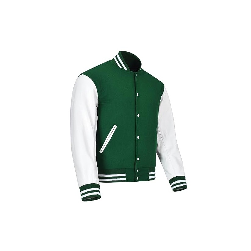 - [FASHION TAILORING]: Contrast long leather sleeves and wool body, banded collar, cuffs and two cross exquisite side pockets. We have been making the exquisite Varsity Jackets, Letterman Jackets, Baseball Jackets and Basketball jacket for many years.