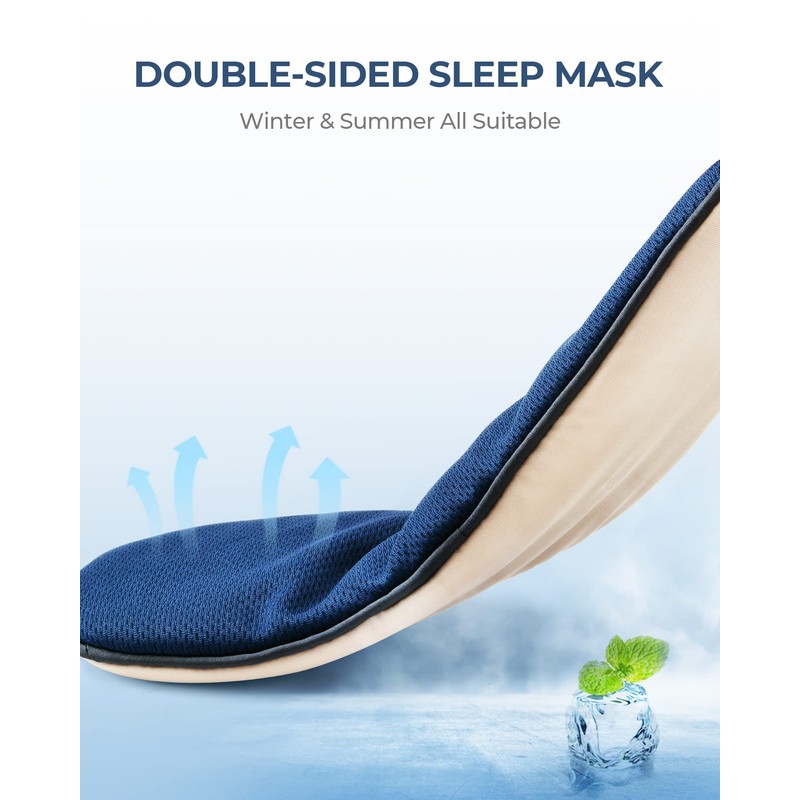 Sleep Mask with Adjustable Ear Loops [2 Packs], Cool Warm Two-Sided Fabric Eye Mask for Sleeping, Work for Side and Back Sleepers, Sleep Masks for Women Men, Sleeping Mask Help You Get to Sleep, Yoga