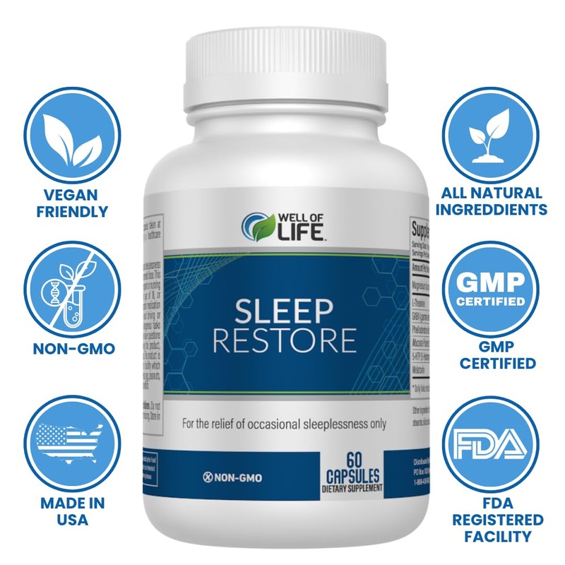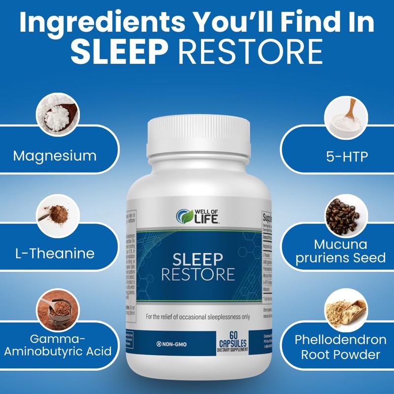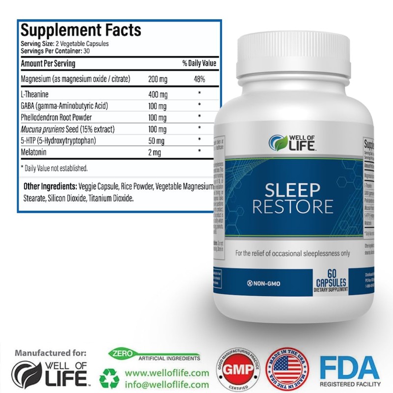 Sleep Restore - Tranquil Sleep Formula with L-Theanine, GABA, 5-HTP, Magnesium, Melatonin & More - 60 Veg Capsules for Deep, Refreshing Sleep & Overall Well-Being