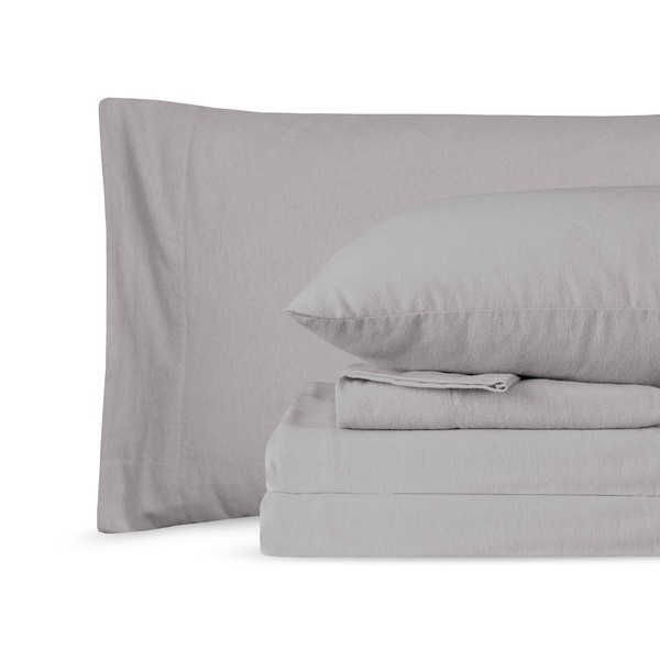 Sleepdown 100% Cotton 160 GSM Flannel Sheet Set - Frost Grey, Twin