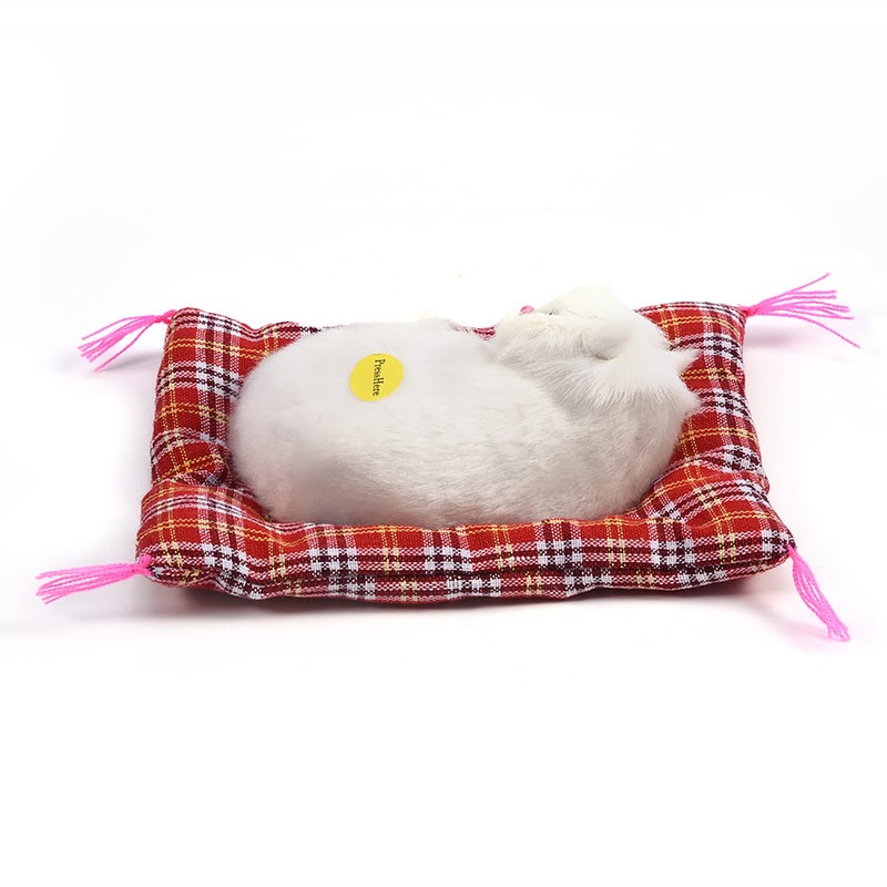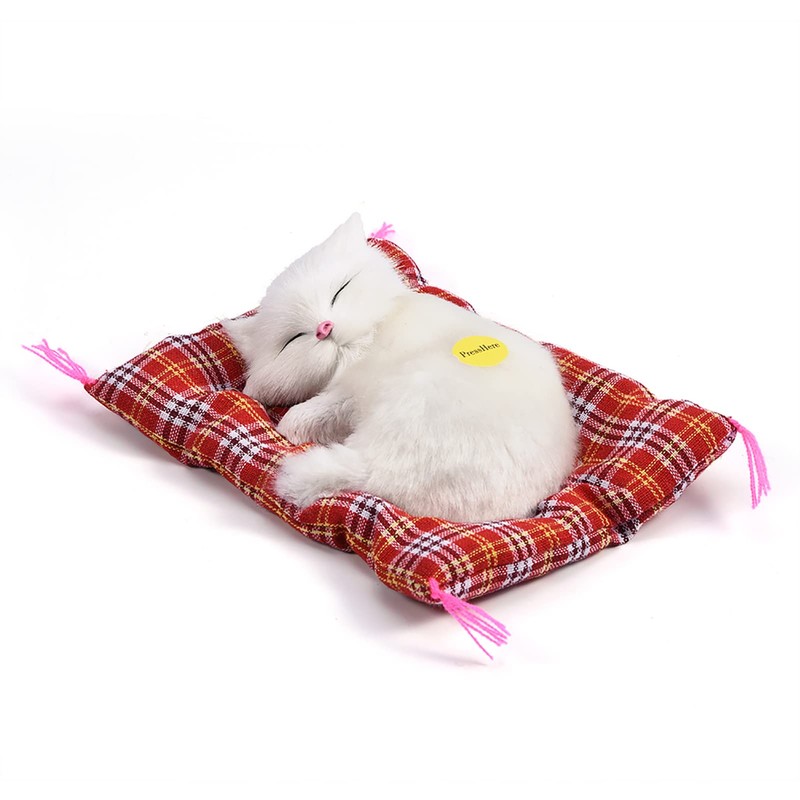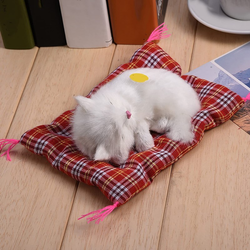 - [Ideal Gift Decorations]: Artificial simulation cat, sleeping cat on pad pillow and kitten sleeping on the cloth cushion, sleeping cat on pad and artificial plush breathing sleeping cat ornament is perfect birthday gifts, holiday gifts, home decoration