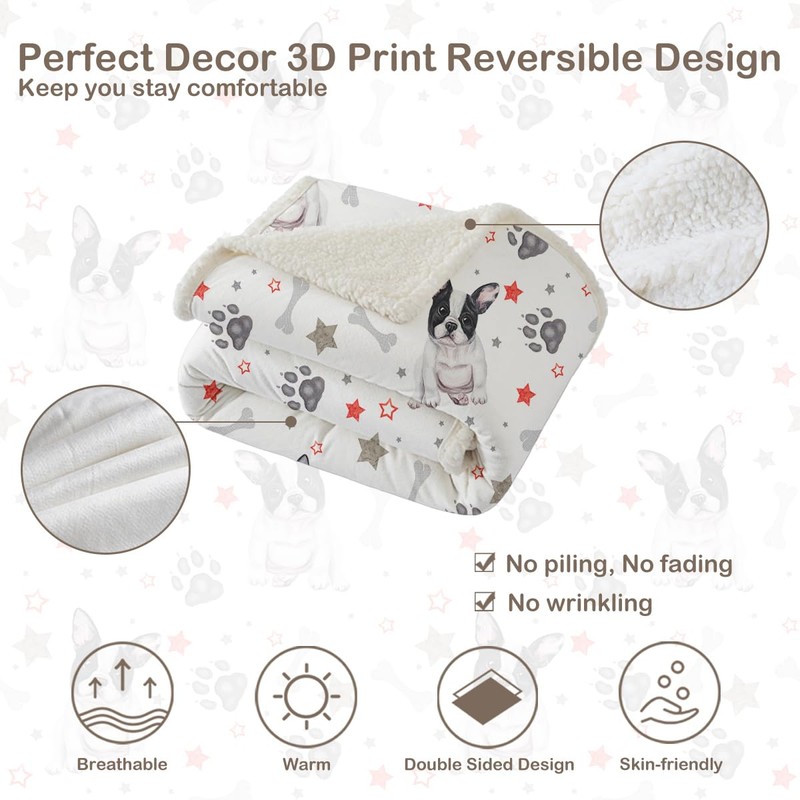 Sleepwish French Bulldog Sherpa Fleece Blanket for Couch Sofa Super Soft Cute Puppy Plush Throw Blanket for Kids Dog Lovers, Throw(50"x60")