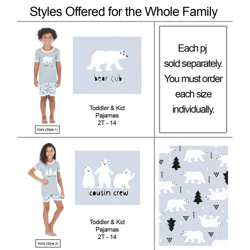 Sleepyheads Grey Polar Bear Family Matching Short Sleeve PJ Sets, Bear Summer, 10 Years, Kid's (Style 1)