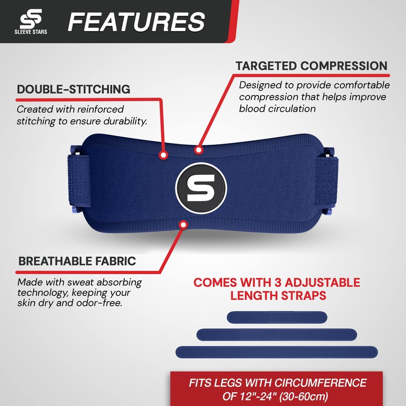 Sleeve Stars Patellar Tendon Support Strap Osgood Schlatter Knee Brace for Youth, Women & Men, Swedish Brand Patella Knee Strap for Arthritis & Pain, Patella Band w/ 3 Lengths (Navy Blue) | SS SLEEVE STARS