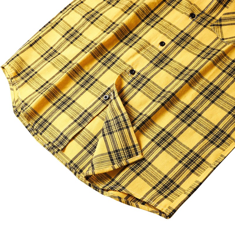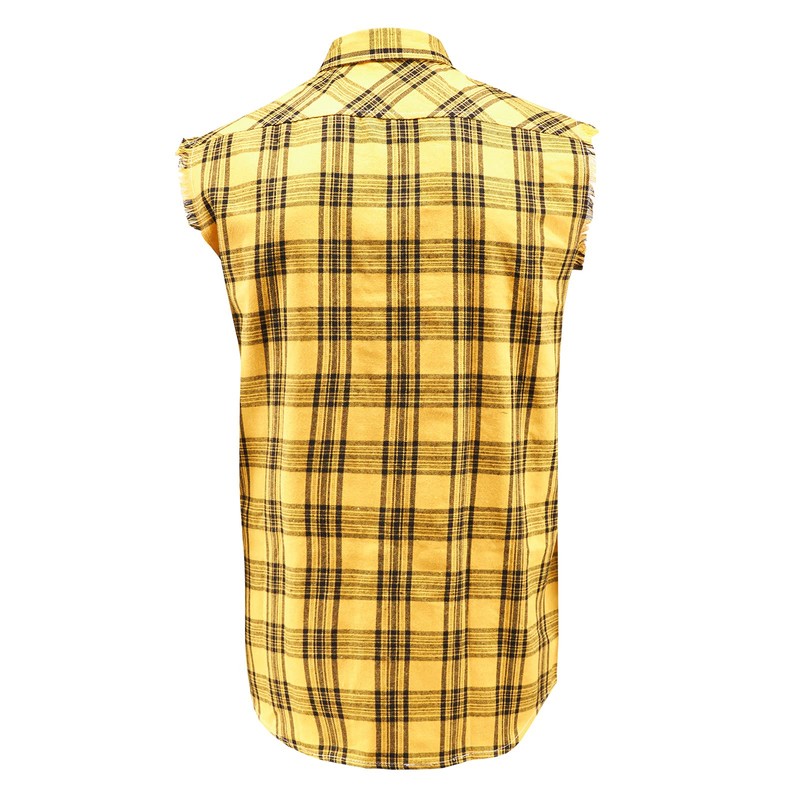 Sleeveless Funny Casual Shirt,Plaid Front Shirt for Men Yellow