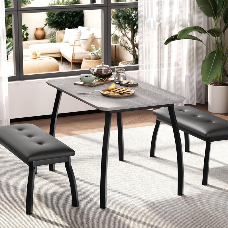 - Easy Assembly & Versatile Use: Clear instructions and labeled parts ensure quick assembly. This compact dining table with bench is perfect as a dinette table set for 4, a breakfast nook, or an inviting spot for homework and coffee breaks in any room