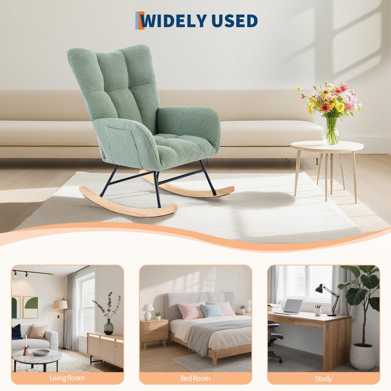 - 【Breathable and Skin】Covered in high-quality teddy fabric, this rocking chair offers a breathable surface that's gentle on the skin. The fabric's easy - maintenance property makes it a practical choice. It seamlessly blends into various settings, be it a hotel lounge, bedroom, living room, office, or nursery, enhancing the aesthetic and comfort of the space.