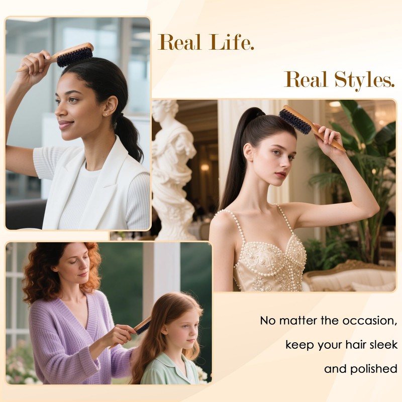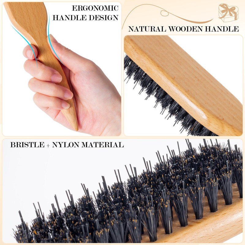 - Reduces Frizz and Static - The boar bristle hair brush evenly distributes natural oils, effectively controlling dryness and frizz while reducing static, leaving hair smoother, easier to comb, and maintaining a naturally shiny, healthy look