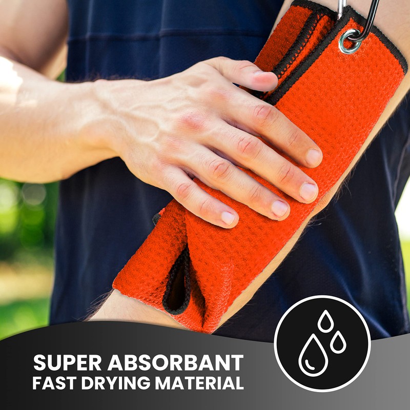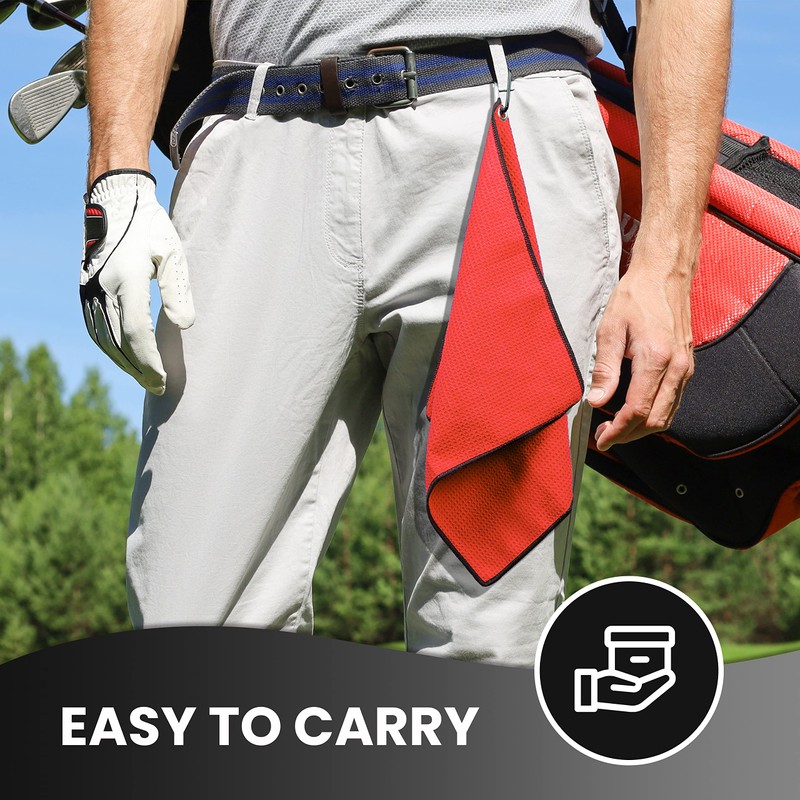 - Toallas de golf con clip: las toallas de golf para hombres tienen un clip muy práctico que se fija a ella. A través de un fuerte y potente clip de mosquetón puedes colgar tus herramientas de golf con bolsas de golf para hombres. Nuestro limpiador de palos incluye todos los accesorios de golf para hombres tiene un agarre irrompible para sujetar la toalla firmemente con bolsas de golf que te permiten concentrarte en tu juego. Además, es el mejor paquete para accesorios de golf para mujeres.
