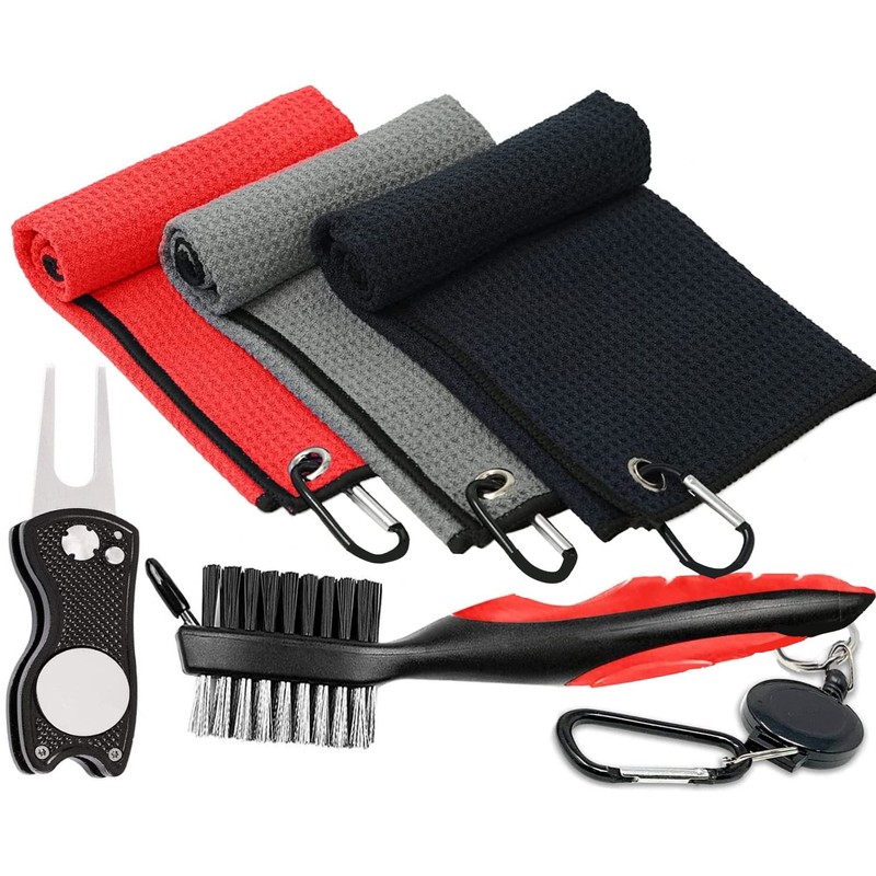 - Regalo de golf para hombres: nuestro kit de limpieza de palos de golf con cepillo para polvo de palo de golf es un combo de cinco artículos y un regalo perfecto para hombres de golf Nuestro equipo de golf es el más adecuado para todos los accesorios de golf. Es un paquete de limpiador de golf multiusos. Atractiva opción para toallas de golf para bolsas de golf para mujeres, regalos de Navidad para hombres y especialmente para regalos de Navidad para mujeres y opción de regalos de golf. Los regalos para golfistas incluyen 3 toallas de golf profesionales + 1 cepillo para polvo de club + 1 cepillo para polvo de club de golf.