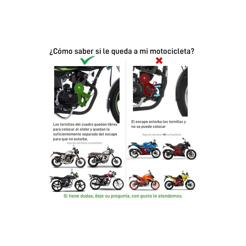 - Montaje: Slider Universal de fácil instalación adaptable a diferentes modelos de motos. La instalación es sencilla, lo que significa que puedes disfrutar de este accesorio sin complicaciones. El montaje es un método de rápido atornillado, no requiere perforación durante la instalación.