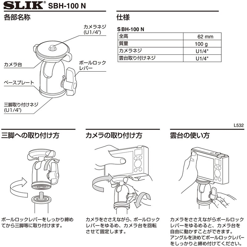SLIK 206331 SBH-100 BK N, Free Head Type, Black