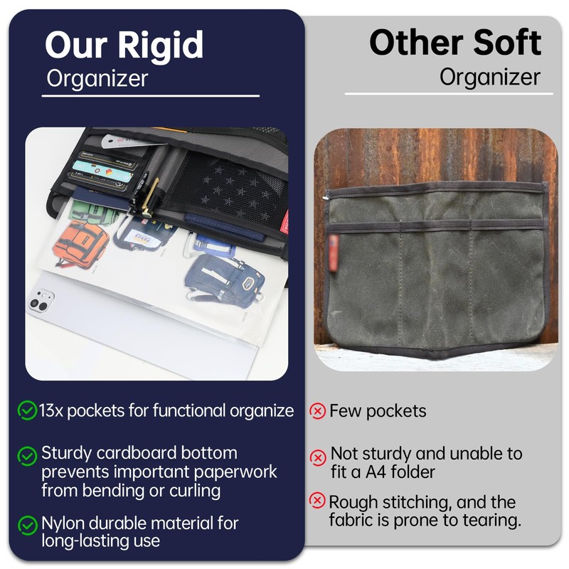 Slim Rugged Organizer Insert for Briefcase Messenger Tote Bag-13 Pockets,Dura...