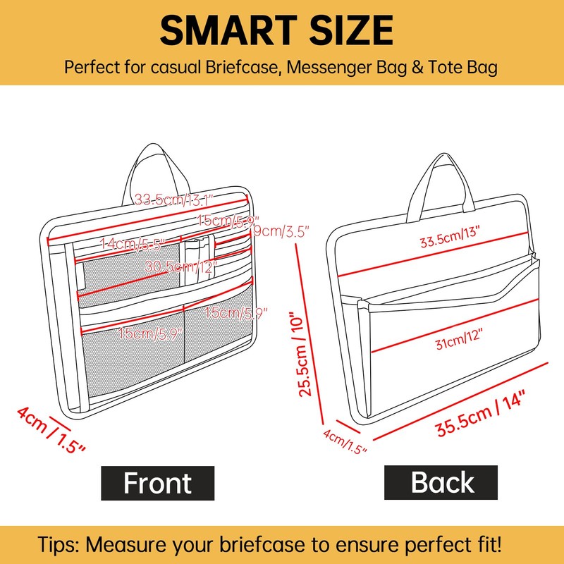 • ✅ Sturdy Design: Slim laptop briefcase organizer is built with rugged construction and reinforced cardboard and dual padded sponge, this tote bag organizer insert stands firm to protect your important paperwork, laptop from bending or damage.