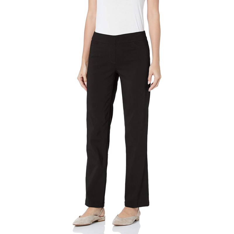 SLIM-SATION Women's Wide Band Pull-On Relaxed Leg Pant with Tummy Control, Black, 18