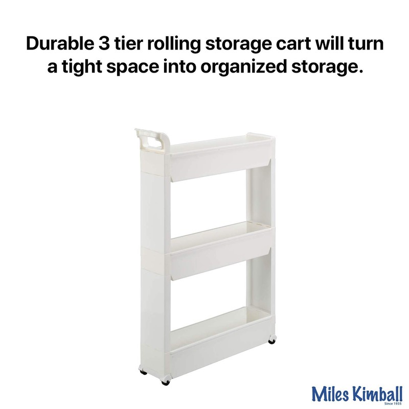 - Durable 3 tier rolling storage cart will turn a tight space into organized storage.