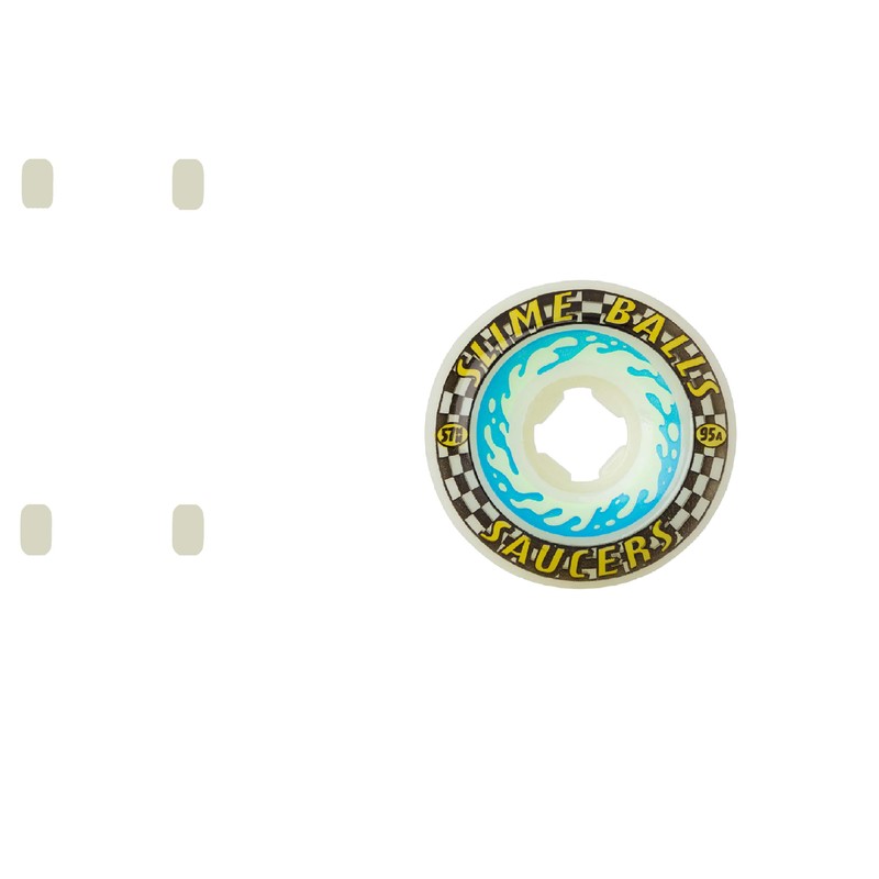 • Slimeballs all new Saucers wheels feature a rounded edge for easy transition "on and off" coping and a narrow riding surface for easy sliding on high performance 99a urethane. 57mm x 33mm 99A.