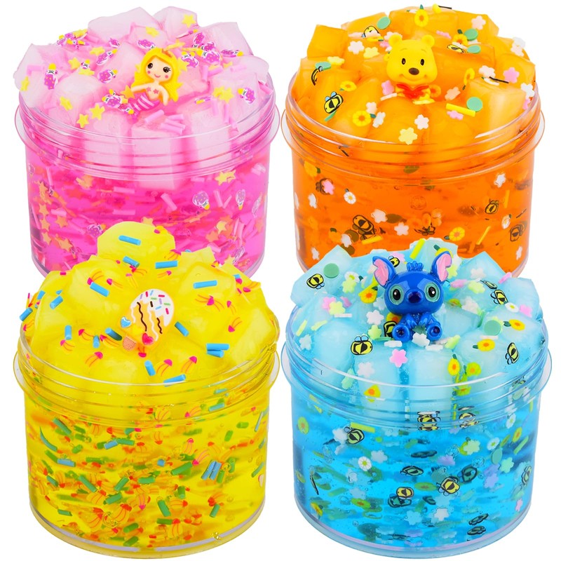 - 💞 4 Pack Jelly Cube Crunchy Slime Kit with charm, Can be used as birthday gift, Christmas gift, class exchange gift, etc. Slime games can enrich children's imagination and creativity,keep children away from electronics.
