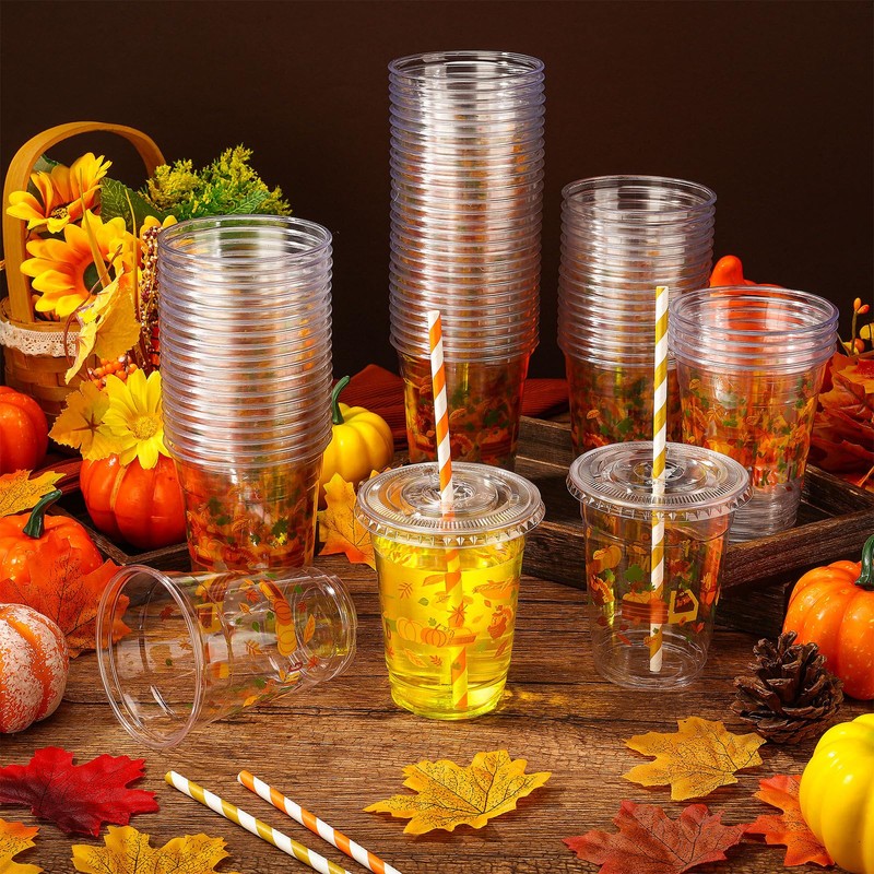 - Ample Quantity: enjoy your Thanksgiving activities knowing that 100 pieces of plastic cups, lids, and paper straws are included in the package; This large number assures that you will not run out of them, ensuring an adequate supply for your visitors; These cups are adaptable and may be applied for both indoor and outdoor events, such as family gatherings, Thanksgiving celebrations, picnics, and more