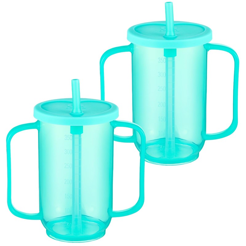 Sliner 2 Pcs Adult Sippy Cups for Elderly, Plastic Spill Proof Cups with 2 Handles Straw and Lid Elderly Drinking Cups for Adults Hospital Disabled Handicapped Patients, 12 oz