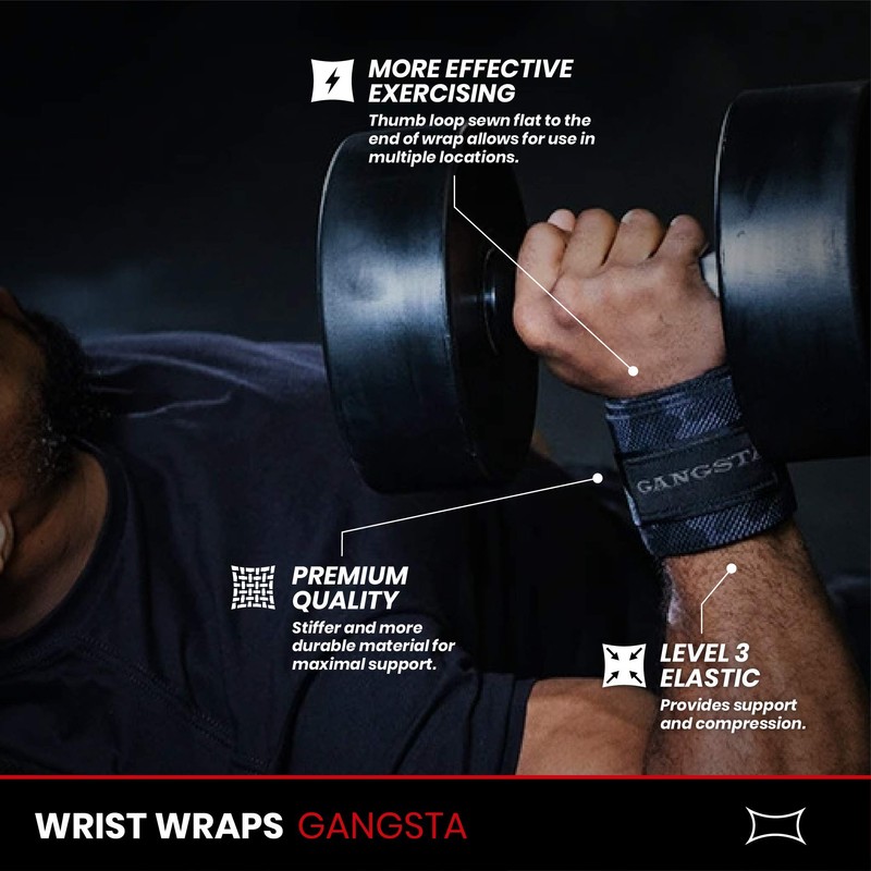 Gangsta Wrapsは、競争力のあるアスリートのためにより硬くて長いものを必要とした後にやってきました。 最大の長さと分割面ファスナーデザインにより、Gangstaラップは手首の周りに硬くまたは適度に作ることができます。
