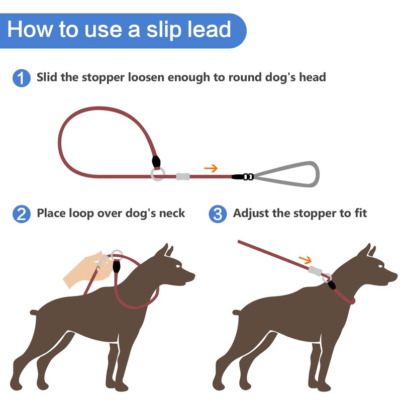 - 🐾【Heavy Duty No-pull Trainning Leash】- Our Slip Lead Leash is great for no-pull trainning, correcting bad behavior and controlling in a short time without causing harm to the dogs. You just need to stabilize your arm, the dogs will stop when the lead becomes tightened. Wait for your dogs to slow down and continue. It's very convenient to use, just slide the adjustable loop over your dog’s heads simply, and use the handle end as a leash. You’ll both be ready to go in just seconds!